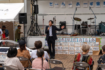 2025年10月12日(日)15:00〜20:00、小田急線鶴巻温泉駅前で鶴巻温泉商店会が主催する「そーらーあーす音楽祭!2025」が開催され、東海大学ソーラーカーの展示とともに、ソーラーカーから音楽イベントへ電力が供給されました。当日は、木村英樹学長による挨拶とソーラー電力の供給システムについて説明が行われました。
